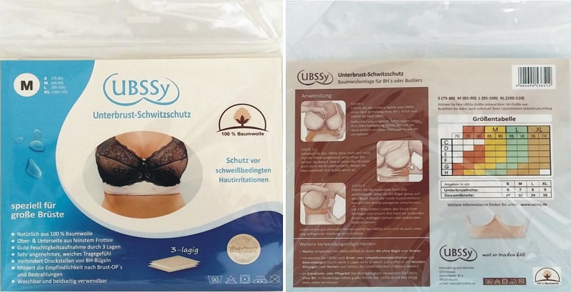 Im Rahmen unseres Vertriebsaufbaus, sind wir besonders interessiert an Vertriebspartnern wie z.B.: - Apotheken - Sanitätsfachgeschäften - Dessousfachgeschäften - Geschäfte für Naturprodukte UBSSy ist ein äußerst sinnvolles und hilfreiches Produkt , denn - Frauen von jung bis alt - Schwangere - Frauenärzte - Hautärzte - Physiotherapeuten - Alten- und Pflegeheime sind von UBSSy absolut begeistert ! Zur Zeit ist UBSSy überwiegend nur online über unseren webshop erhältlich. Dadurch haben leider vor allem auch ältere Frauen ohne Internetzugang das Nachsehen und kaum die Möglichkeit UBSSy kennenzulernen um damit ihre Beschwerden zu lindern. Zudem wären die Kundinnen sicher sehr dankbar wenn Sie UBSSy sofort und direkt - ohne Versandkosten - einkaufen könnten. Jeder UBSSy ist einzeln verpackt und eingeschweißt. Die Verpackung hat ein Maß von 24 x 22 cm, ist mit einer Euro-Lochung und EAN-Code versehen und kann hängend optimal präsentiert werden.